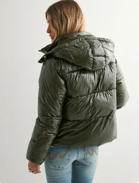 Doudoune Zara™, conçue pour allier chaleur et style. Modèle court avec cordon de serrage à la base, capuche ajustable et boutons-pression sur le devant pour un look moderne et un confort optimal.